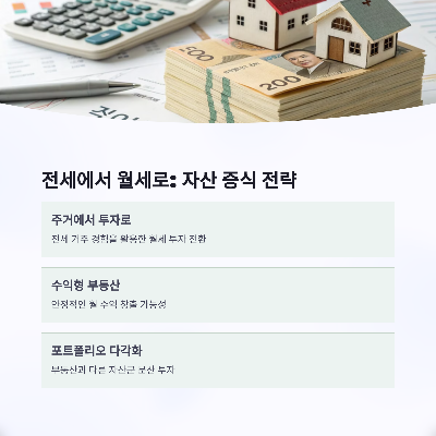 이게 좀 충격일 수도 있는데요, 일정 자산이 쌓이면 오히려 전세보다 월세가 유리할 수도 있습니다. 그 이유는 간단해요. 전세금에 묶여 있는 돈을 풀어서 투자에 활용하면, 월세 부담을 상쇄하고도 남는 수익을 얻을 수 있거든요.